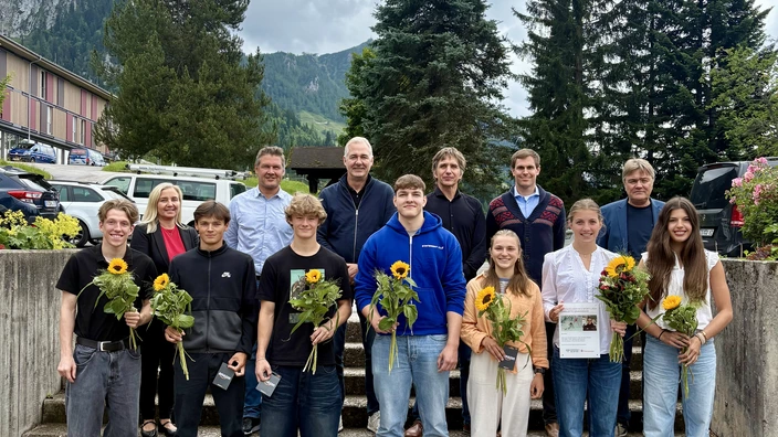vordere Reihe: Luka Kamissek (Snowboard Freestyle), Barbara Koller (SPK BGL), Jonathan Gräbert (Nordische Kombination), Damian Millinger (Snowboard Freestyle), Maximilian Leo (Ringen), Helena Euringer (Skibergsteigen), Charlotte Grandinger (Ski Alpin), Greta Sachsenröder (Ski Alpin)